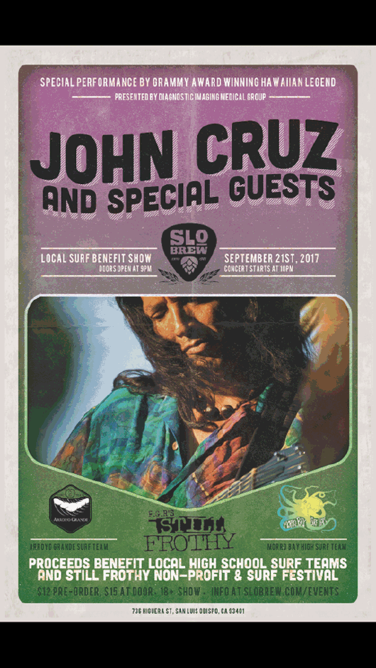 Still Frothy & Diagnostic Imaging Group present Grammy Award Winning Hawaiian Legend John Cruz for what will be a magical evening filled with positive vibes and amazing music